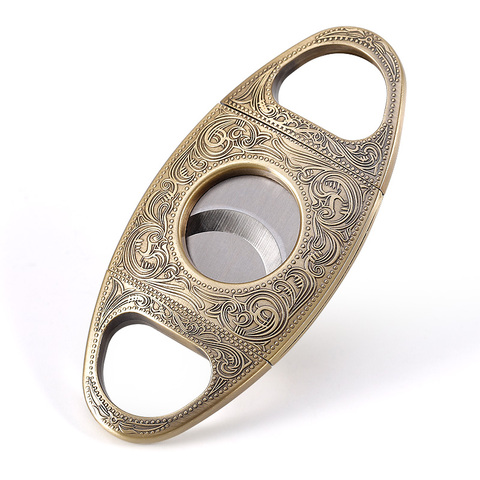Cao cấp xách tay thép không gỉ Cigar Cutter với biểu tượng tùy chỉnh vàng bạc đen khắc kéo